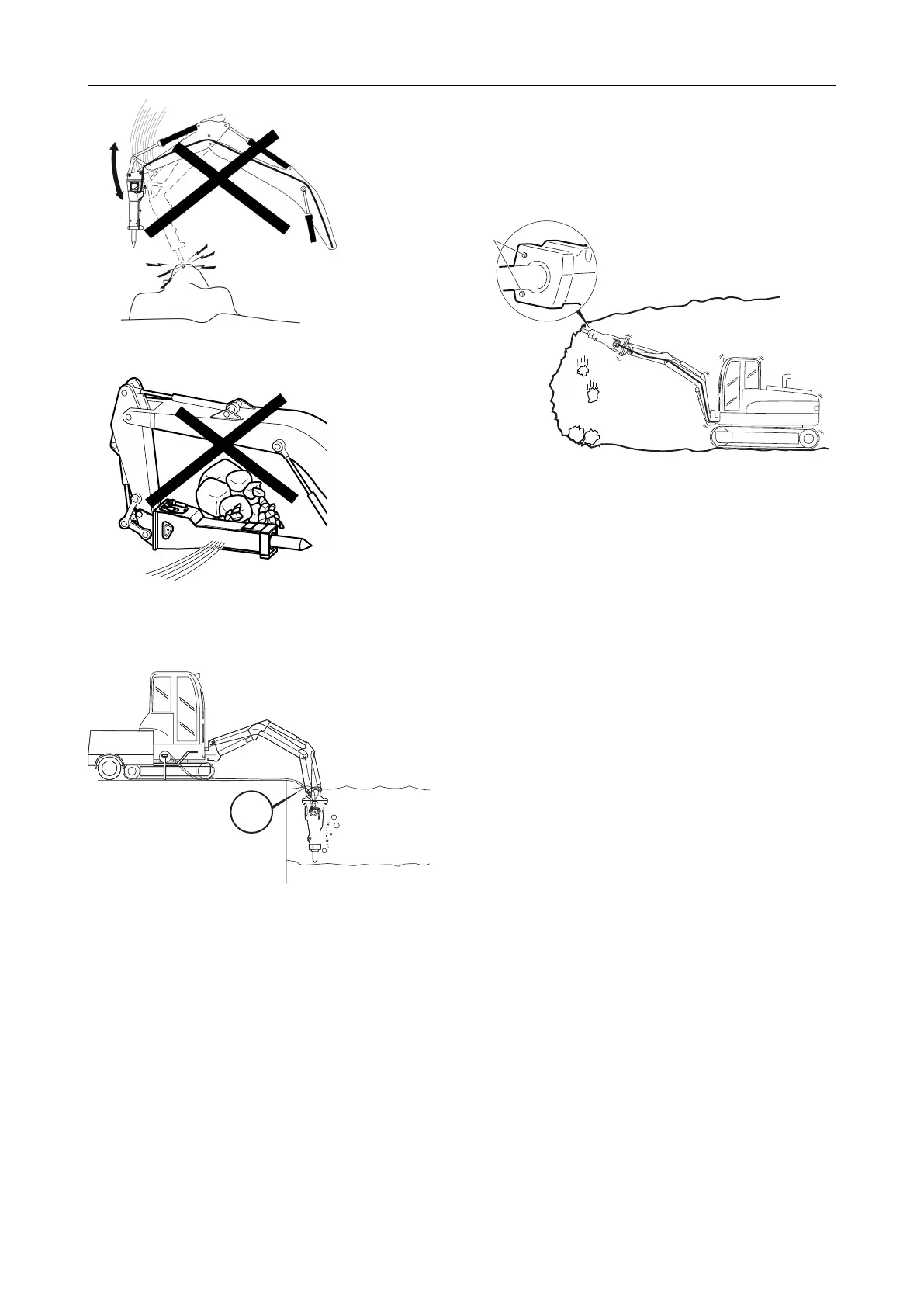 Never use the hydraulic breaker to move