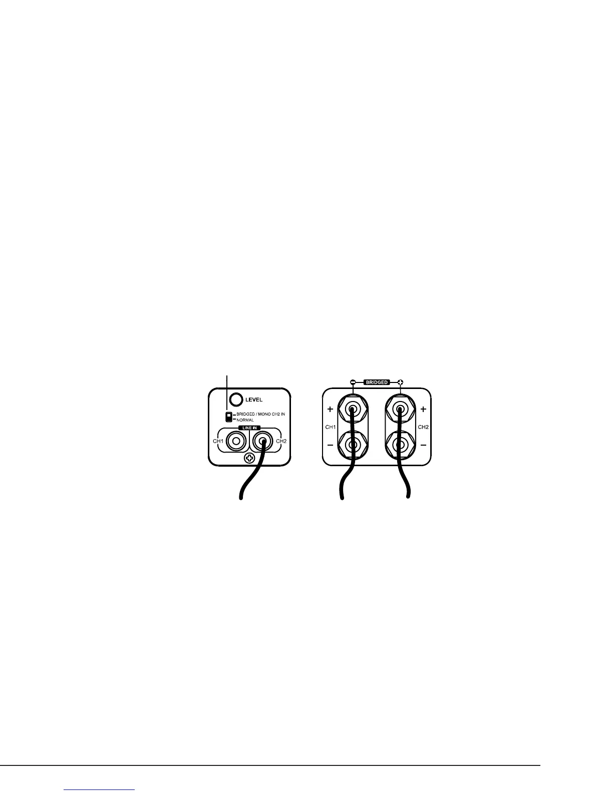 • DO NOT connect more than one speaker to the outputs of the bridged channel.