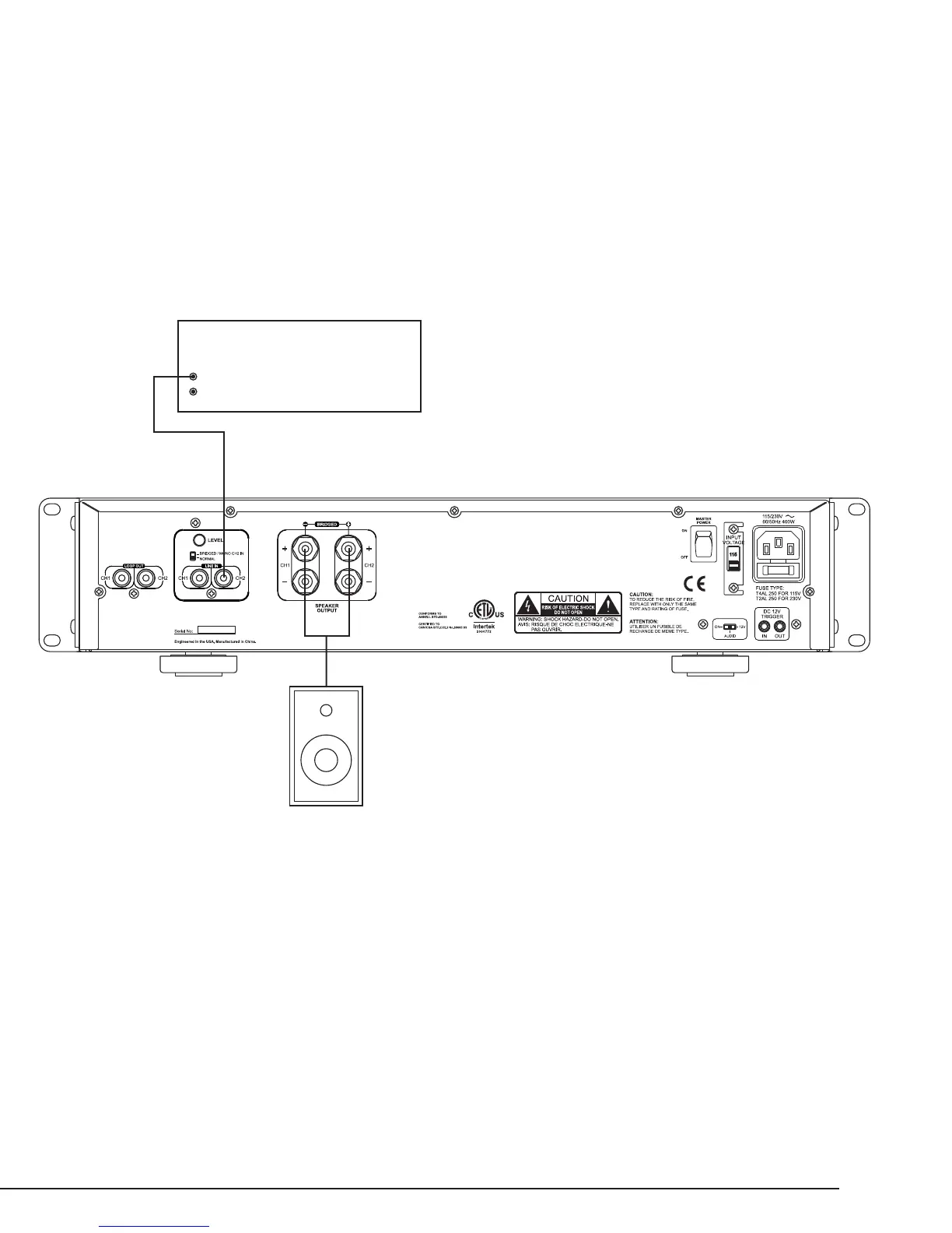 Note: Maintain a minimum 8 ohm load when using Bridged Mode