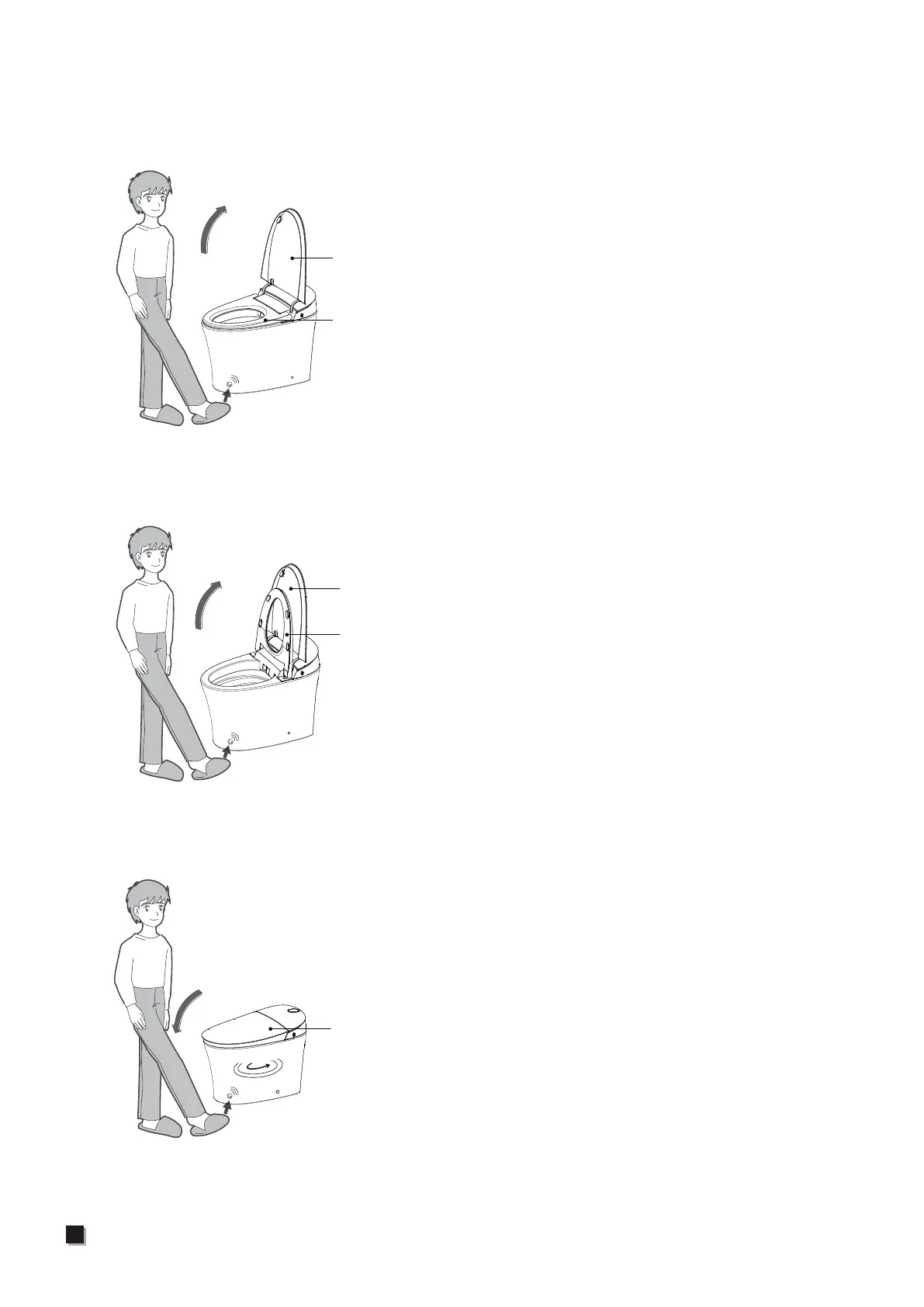 1. When the lid and seat are both closed, touch the sensing area with foot to open the lid.