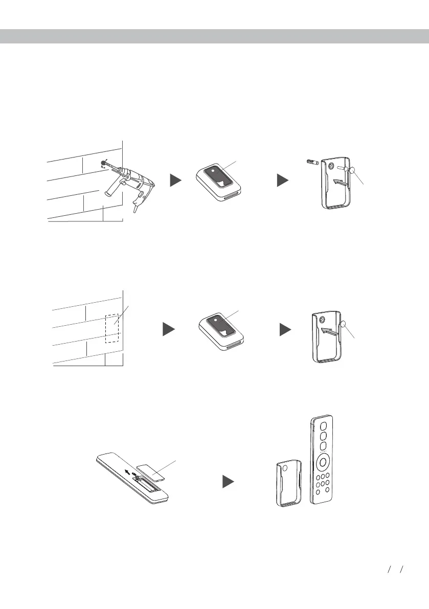 3. Install an anchor into the hole, stick the holder to the wall and secure with screws and then
