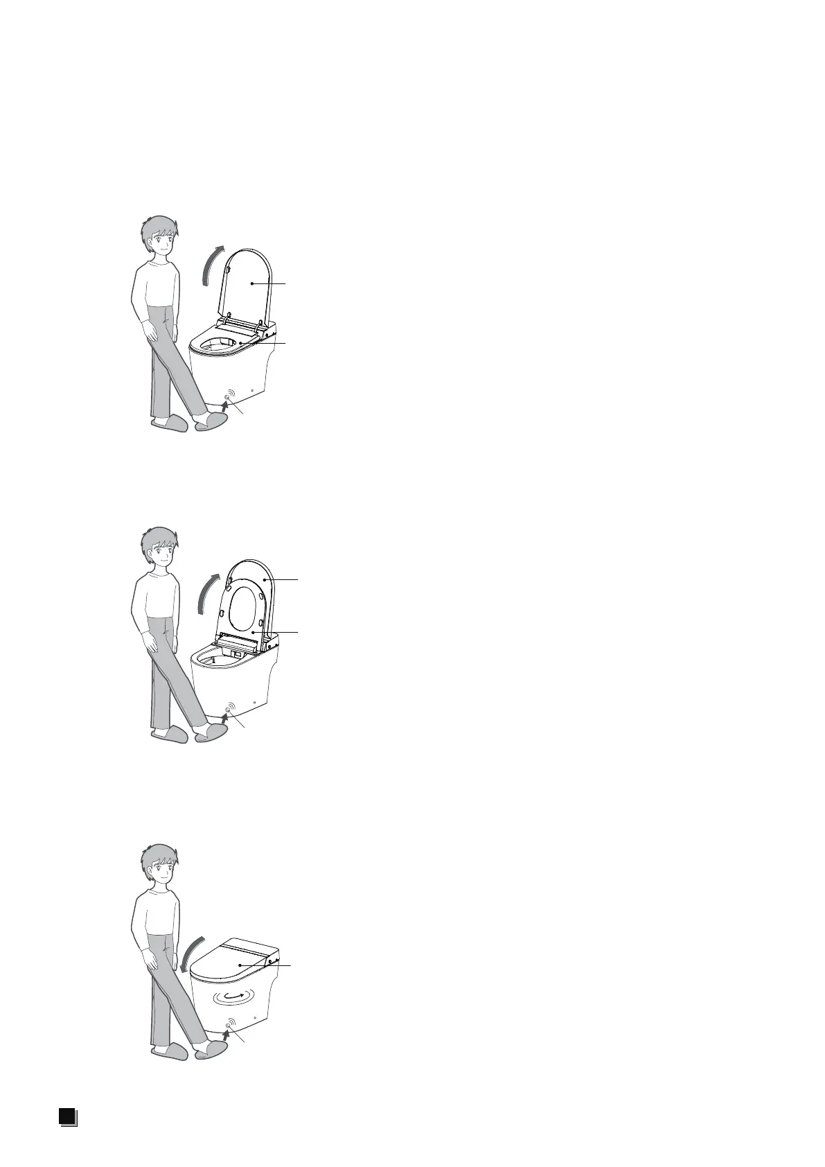 1.When the cover and seat are both closed, put the foot within the sensing area and then cover
