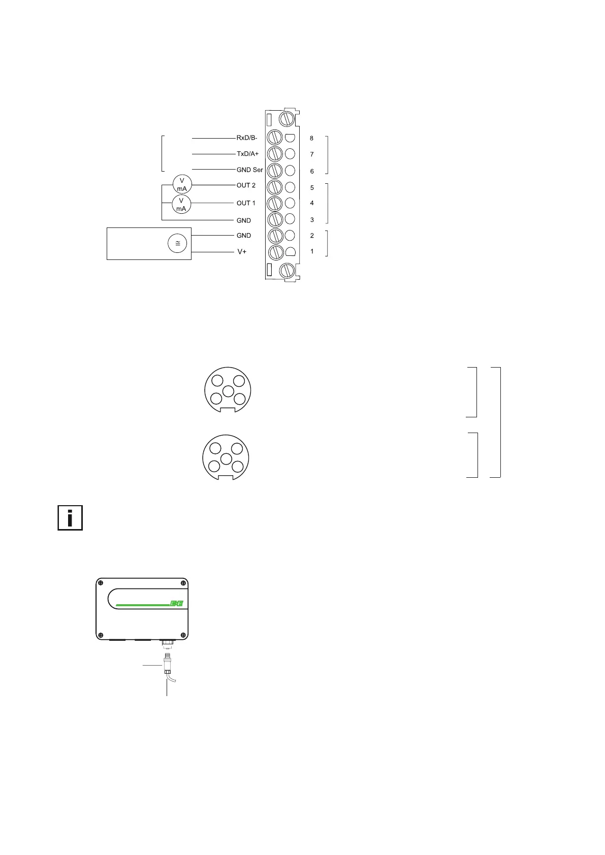 Fig. 9 Pin assignment on screw terminals for electrical connection via cable glands