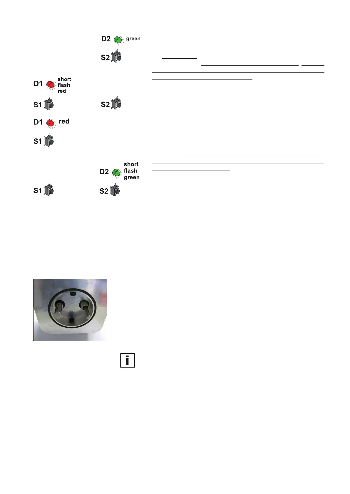 A short flash of the LED "D2" indicates the reset.