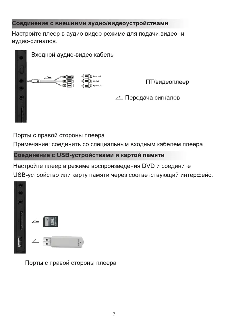 eplutus EP-9518T - Соединение с внешними аудио;видеоустройствами; Соединение с USB-устройствами и картой памяти