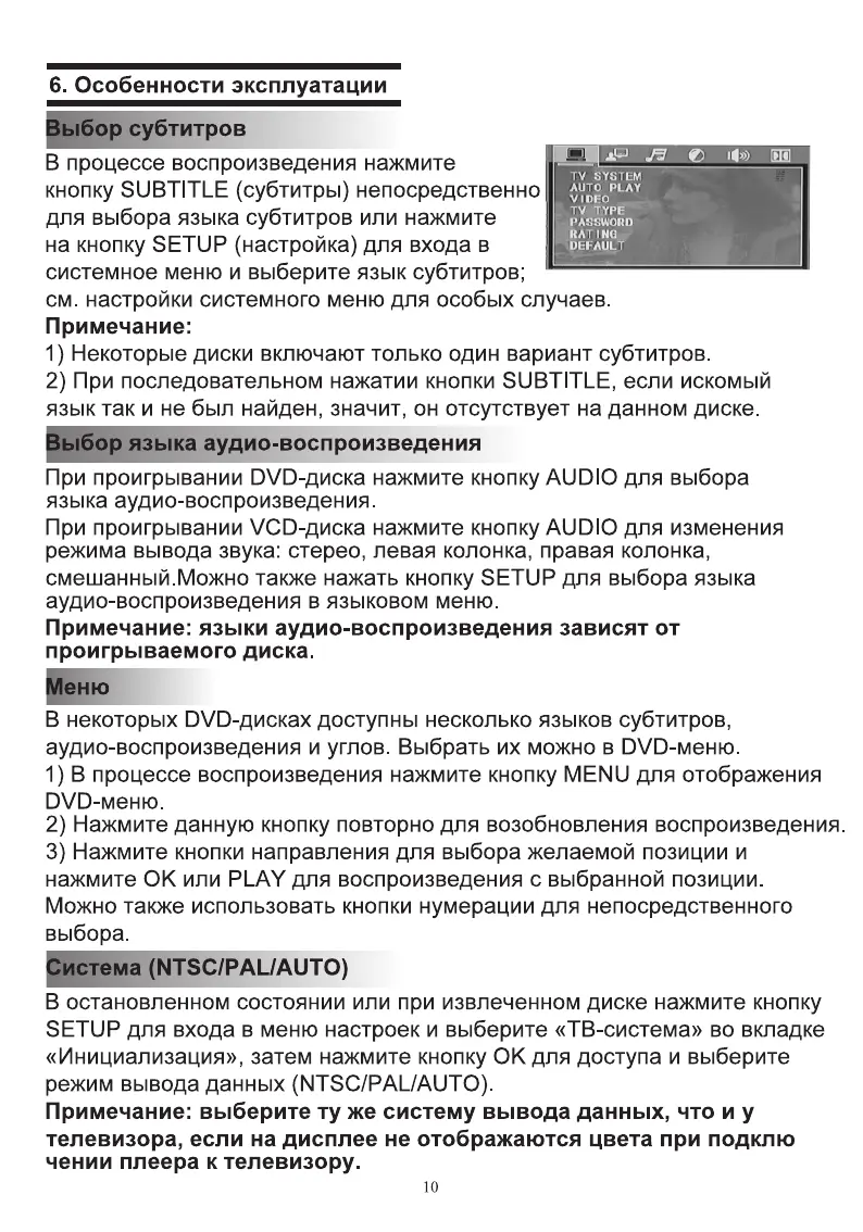 eplutus EP-9518T - Особенности эксплуатации; Выбор субтитров; Выбор языка аудио-воспроизведения; Меню