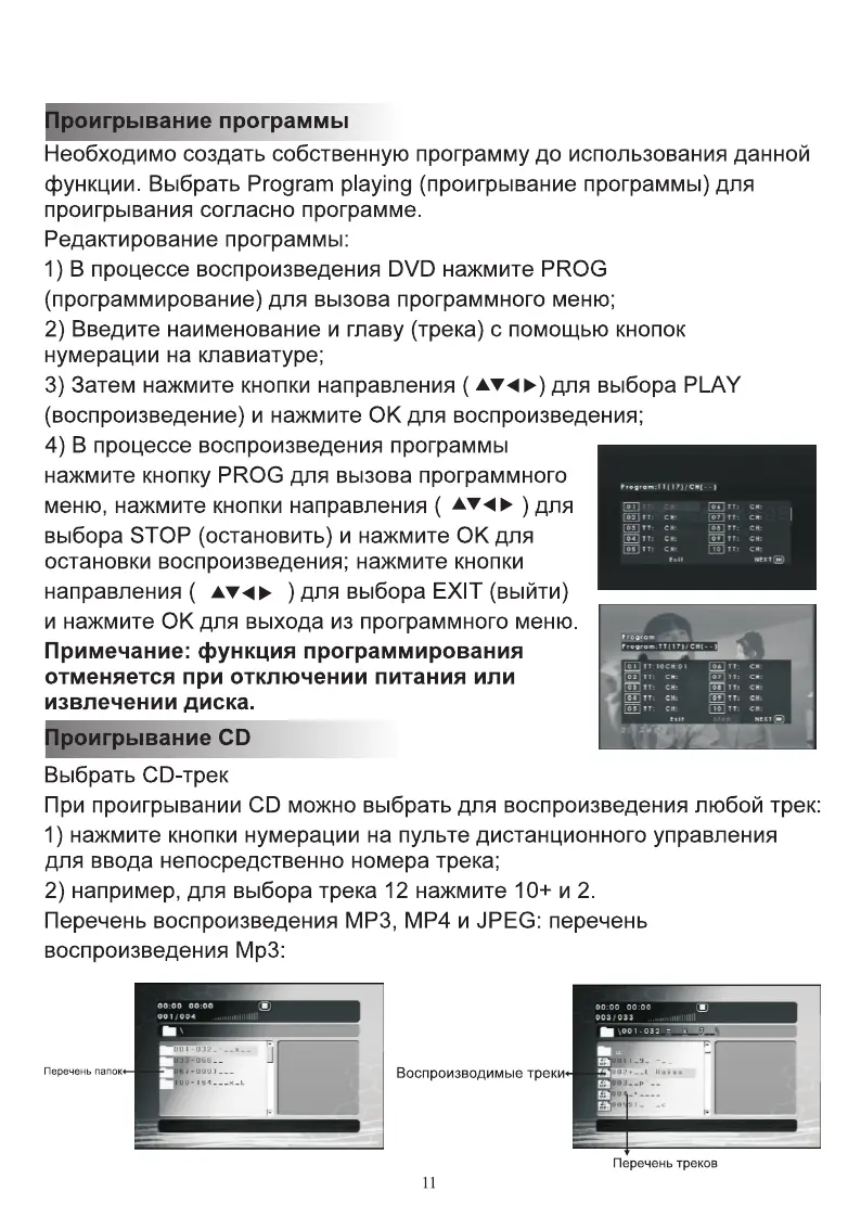 eplutus EP-9518T - Проигрывание программы; Редактирование программы; Проигрывание CD; Выбрать CD-трек