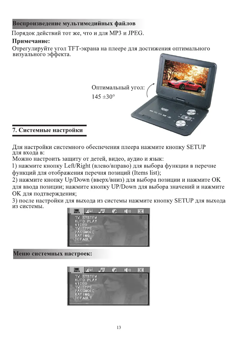 eplutus EP-9518T - Воспроизведение мультимедийных файлов; Системные настройки