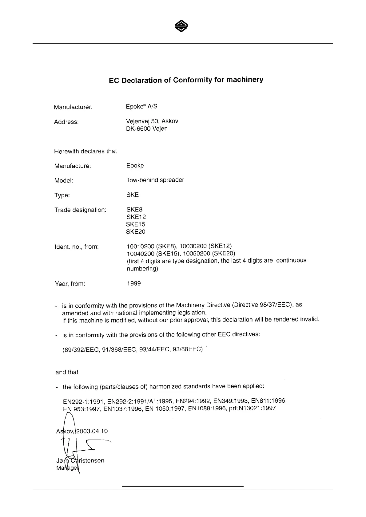Epoke SKE20 - EC Declaration of Conformity