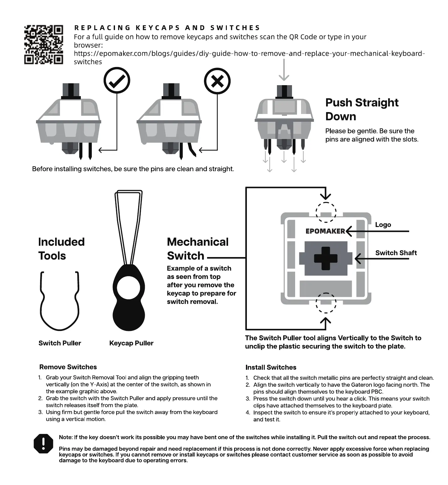 For a full guide on how to remove keycaps and switches scan the QR Code or type in your