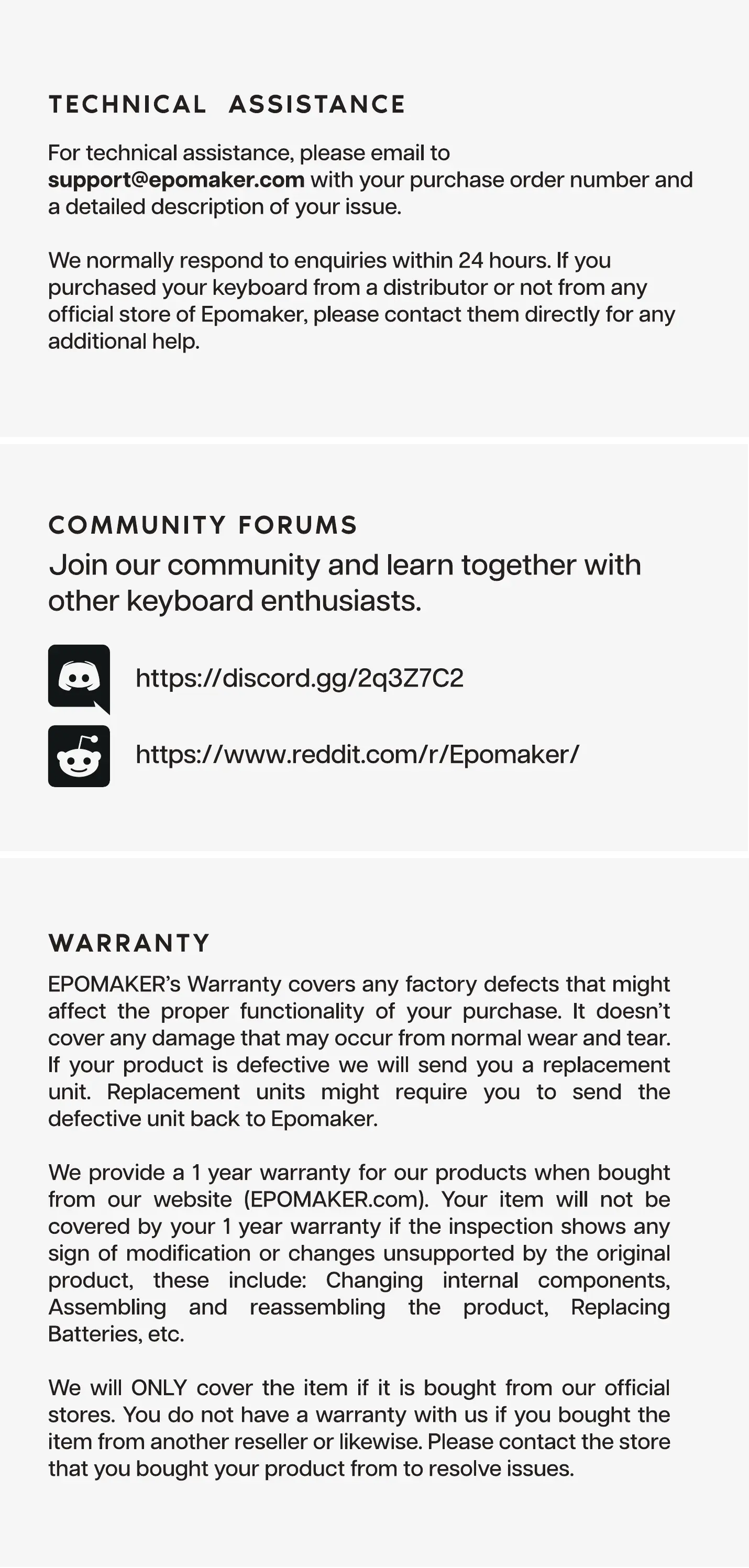 EPOMAKER's Warranty covers any factory defects that might