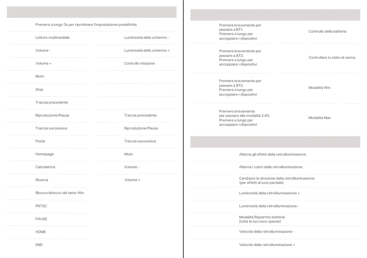 Premere a lungo 3s per ripristinare l'impostazione predefinita