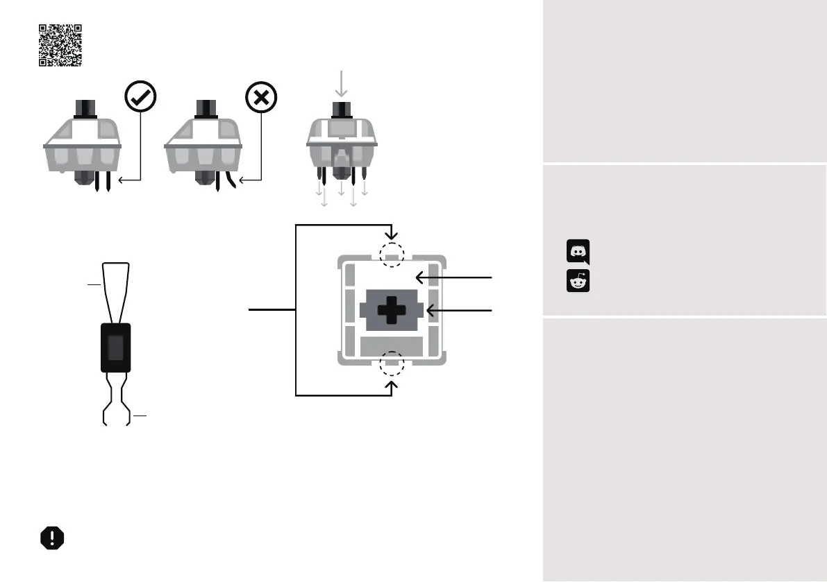 Voor een volledige handleiding over het verwijderen van toetskapjes en schakelaars, scan de