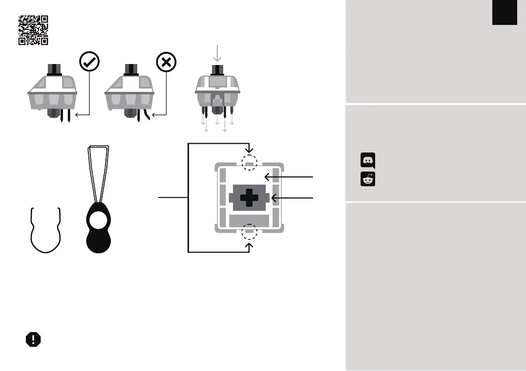軸を引き抜き過程に誤操作でピンが壊れると回復できませんの可能性がある。軸とキーキャップをインストールする時に、強力過ぎではないとご注意ください。