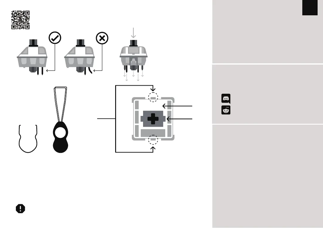 注意:如果您在插拔轴体的过程中不慎将轴体底部插针弯曲,则键盘按键会无法正常工作。此时请将轴体拔出,将插针捋平并还