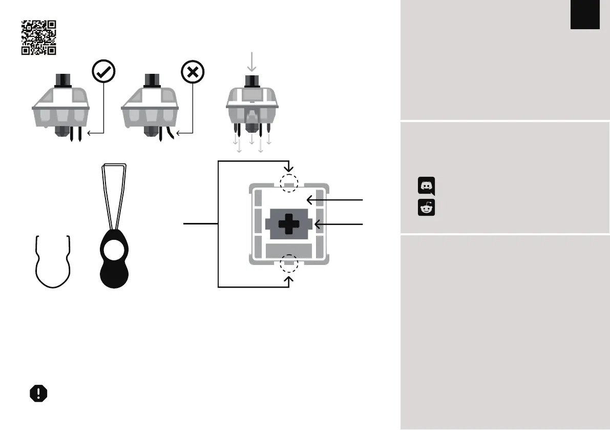 如在插拔过程中操作不当,则插针可能会被损坏且无法修复。在安装轴体和键帽时,请不要过度用力。安装过程中禁止使用暴力