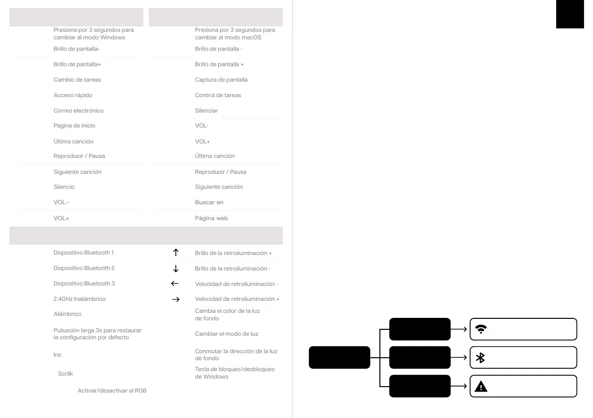 emparejarse y la luz parpadeará. Si no hay conexión, el teclado entrará en modo de reposo.