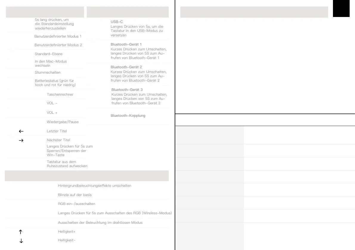 Halten Sie FN+R/T/Y 3 Sekunden lang gedrückt, die Tastatur beginnt mit dem Pairing, das