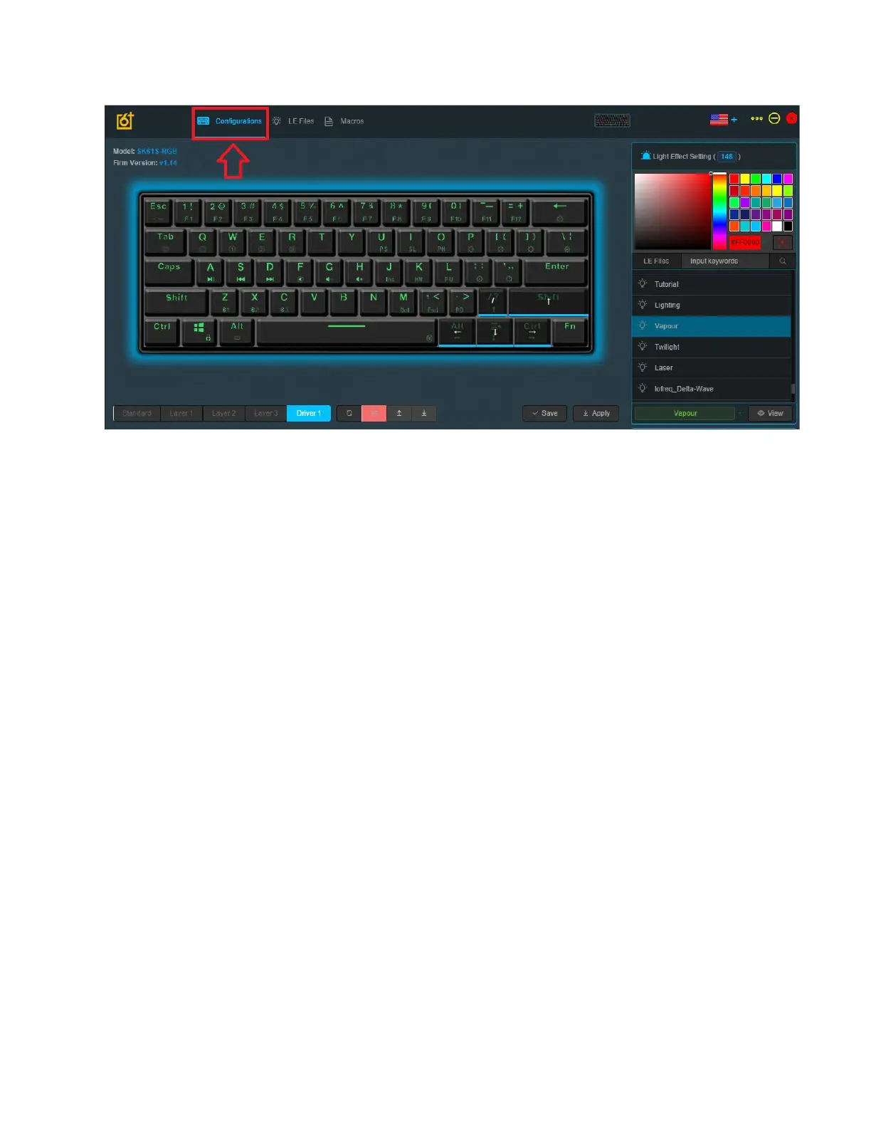 1. Launch the software with the keyboard connected in wired mode. The keyboard must