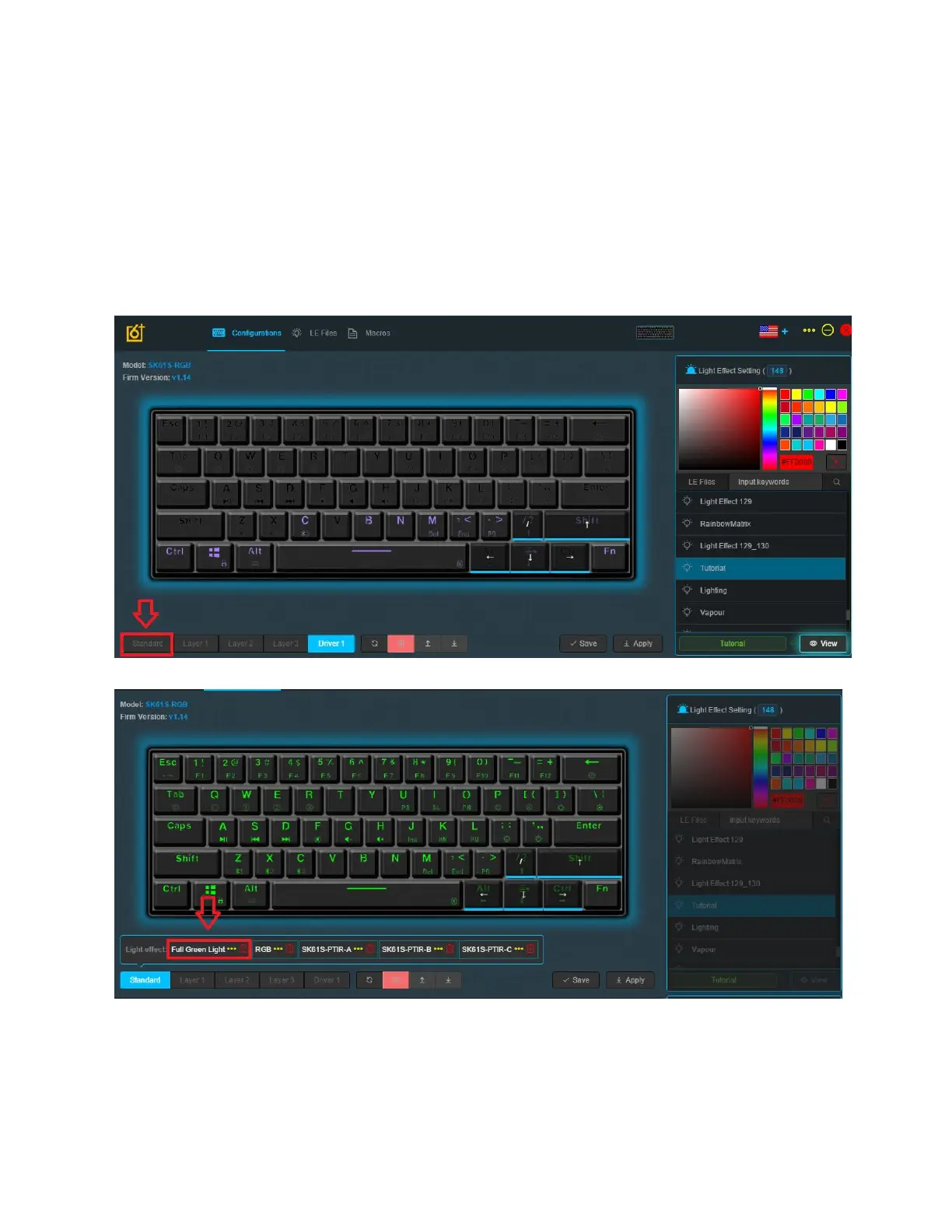We’re going to be adjusting the on-board lighting effects. You can access these effects by using