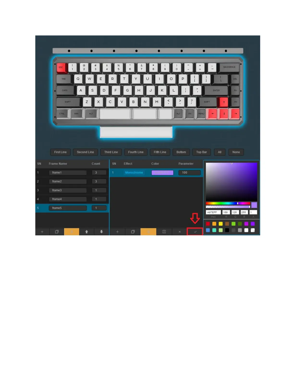 save the configuration to your lighting file. This can then be used on your keyboard.