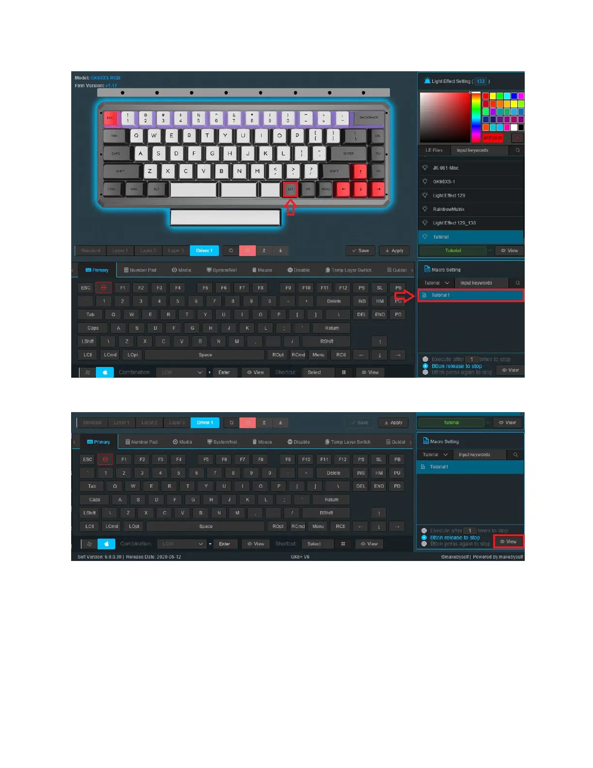 4. After selecting the key and the macro, click view and you will see the macros name