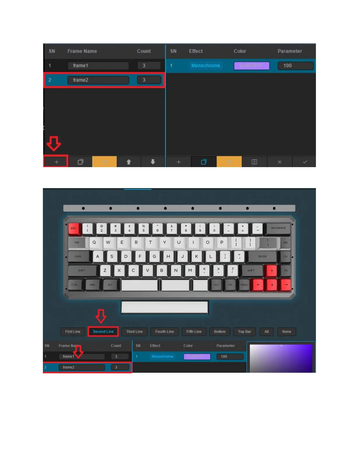 5. Select what the next frame is going to do, since we’re going to be lighting up the rows on