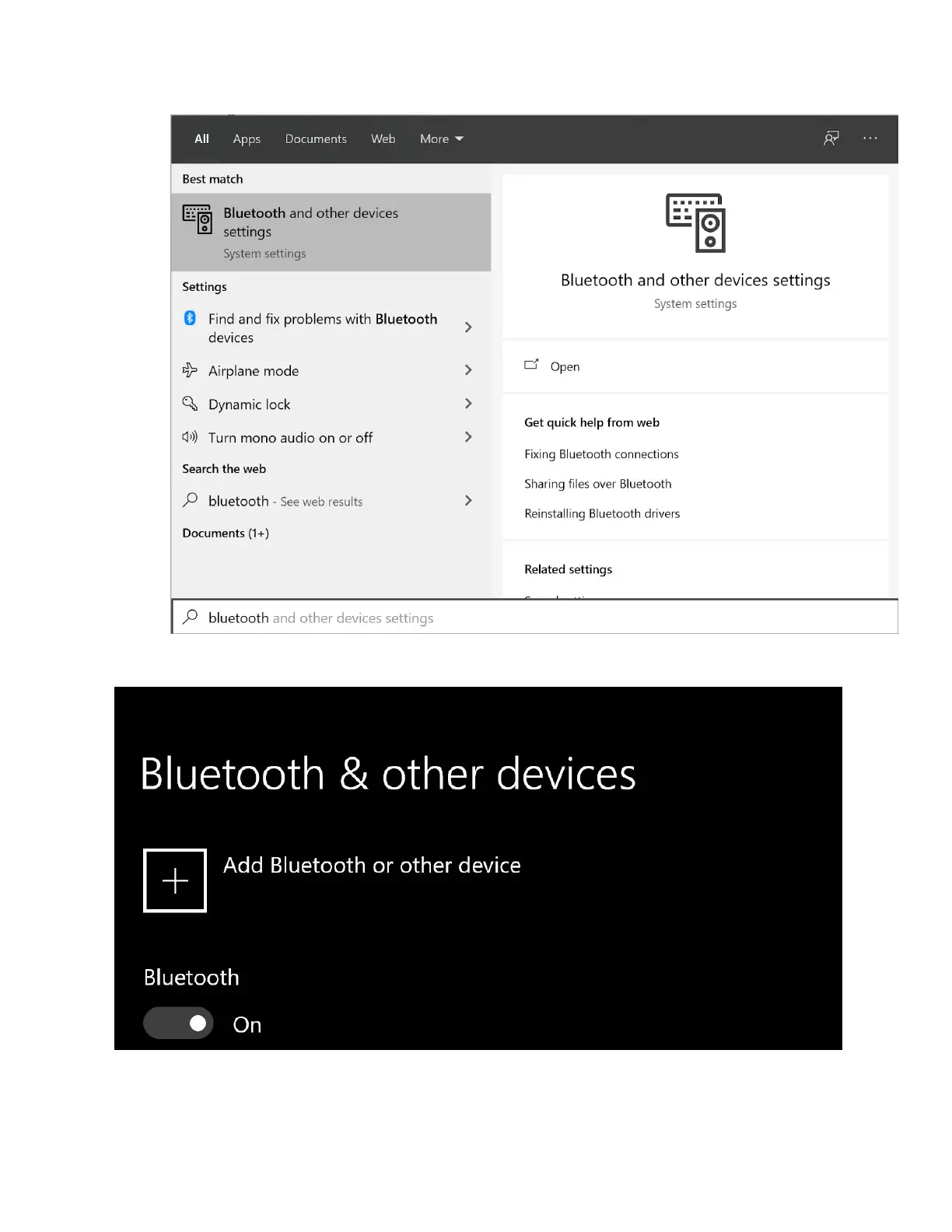 4. Press the windows key, and type “Bluetooth” into the search.