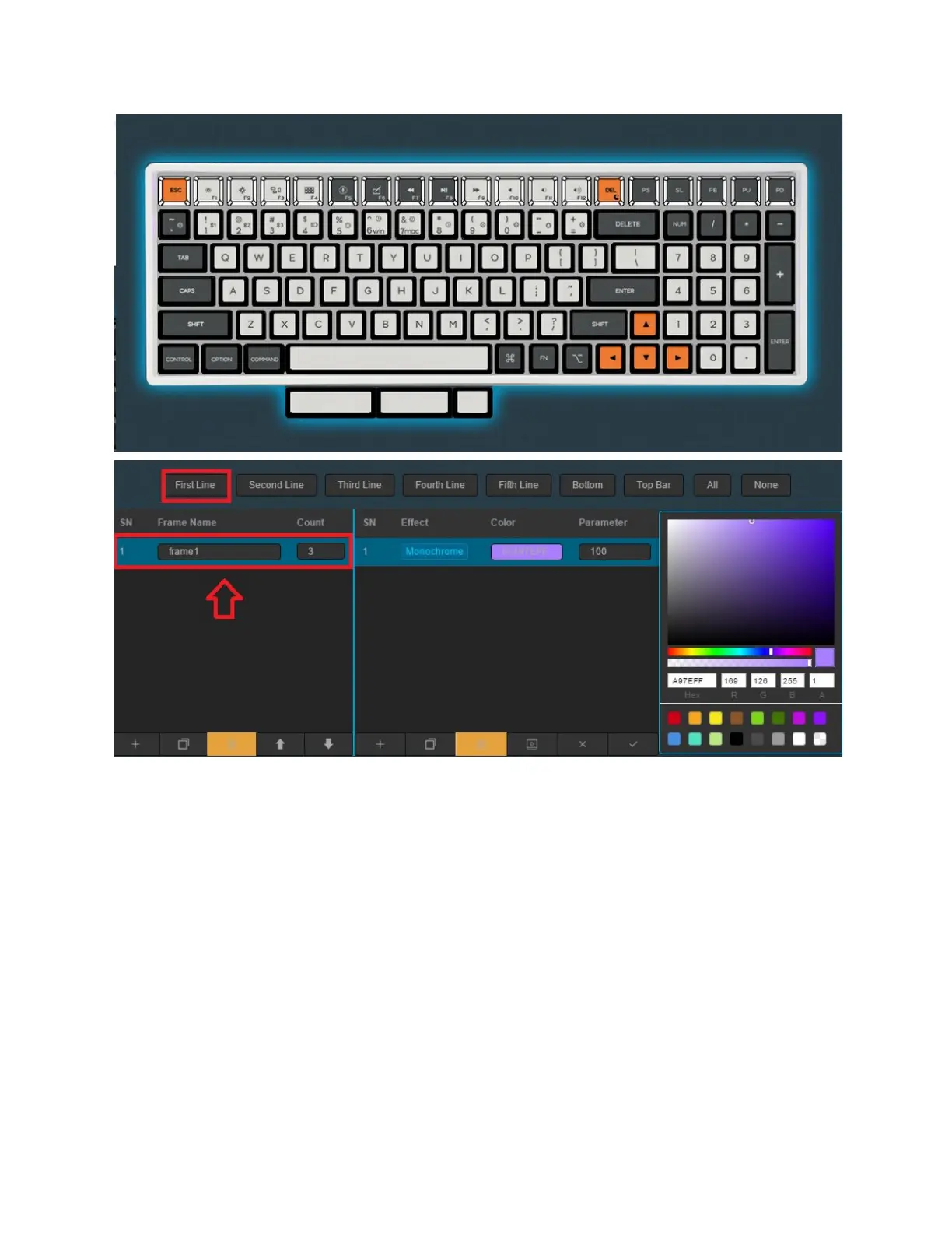 long the colour will stay on the board. We then will select “First Line” as we want the