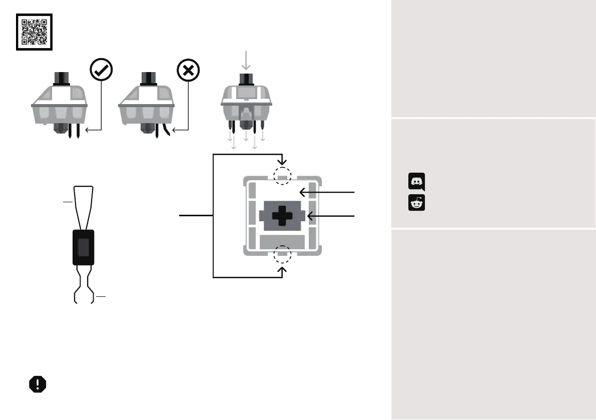 Remarque : si la touche ne fonctionne pas, il est possible que vous ayez plié l’un des commutateurs lors de son installation. Retirez