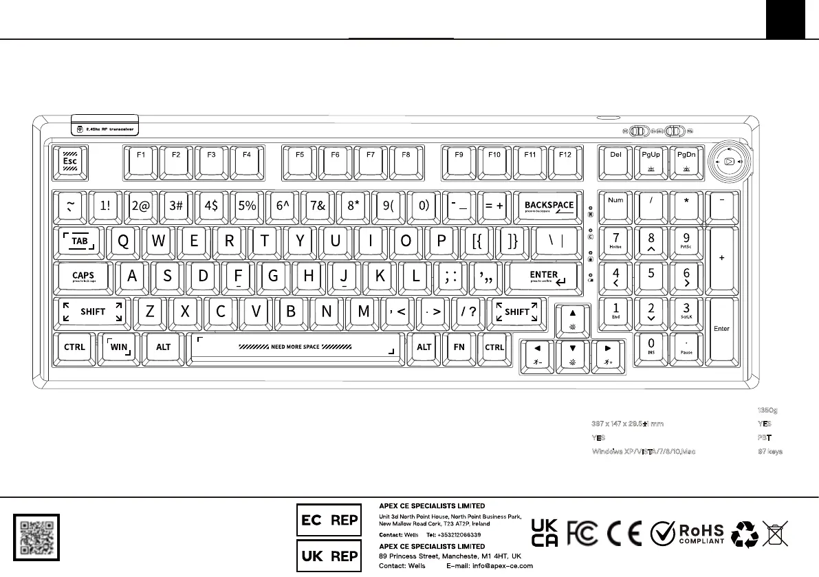 98キー配列/ホットスワップ対応有線/無線メカニカルキーボード