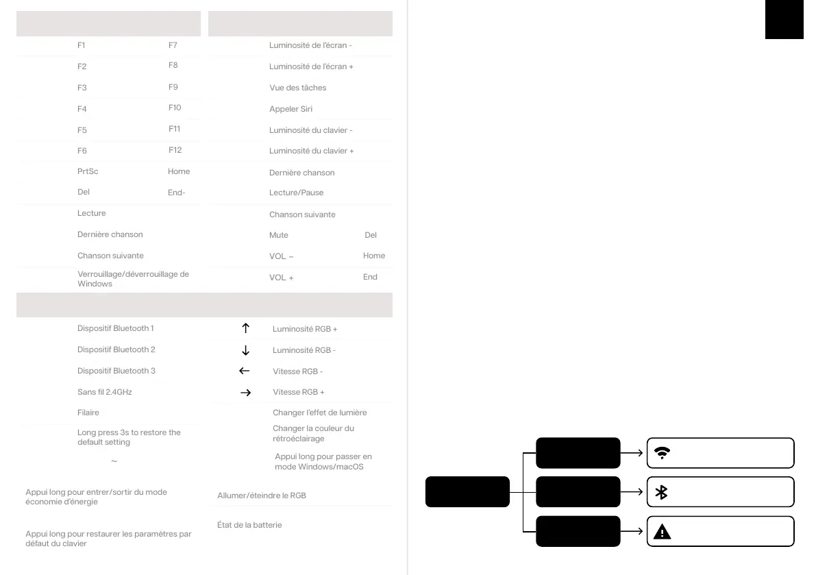 Si vous changez d’appareil et/ou de système, veillez à appuyer sur FN + ALT_L pour changer