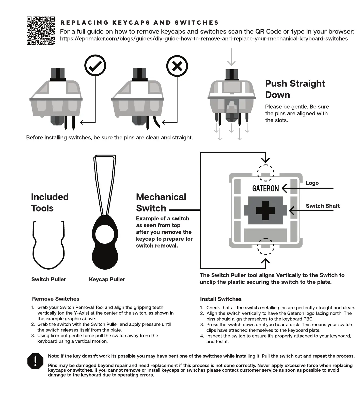 For a full guide on how to remove keycaps and switches scan the QR Code or type in your browser: