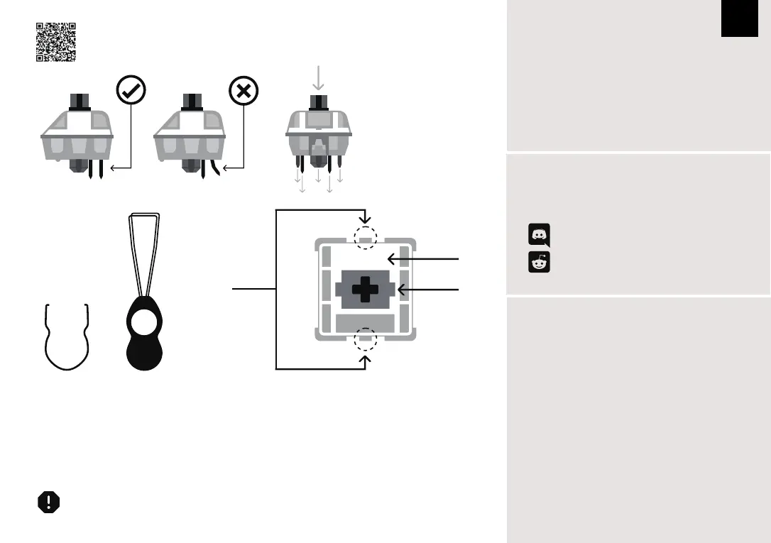 Voor een volledige handleiding over het verwijderen van toetskapjes en schakelaars, scan de