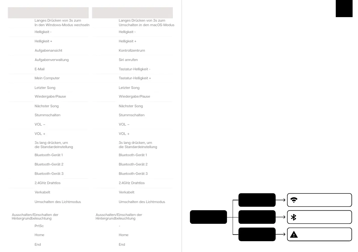 Wenn die Anzeige 2 Sekunden lang bleibt und dann aus ist, ist die Tastatur erfolgreich verbunden.