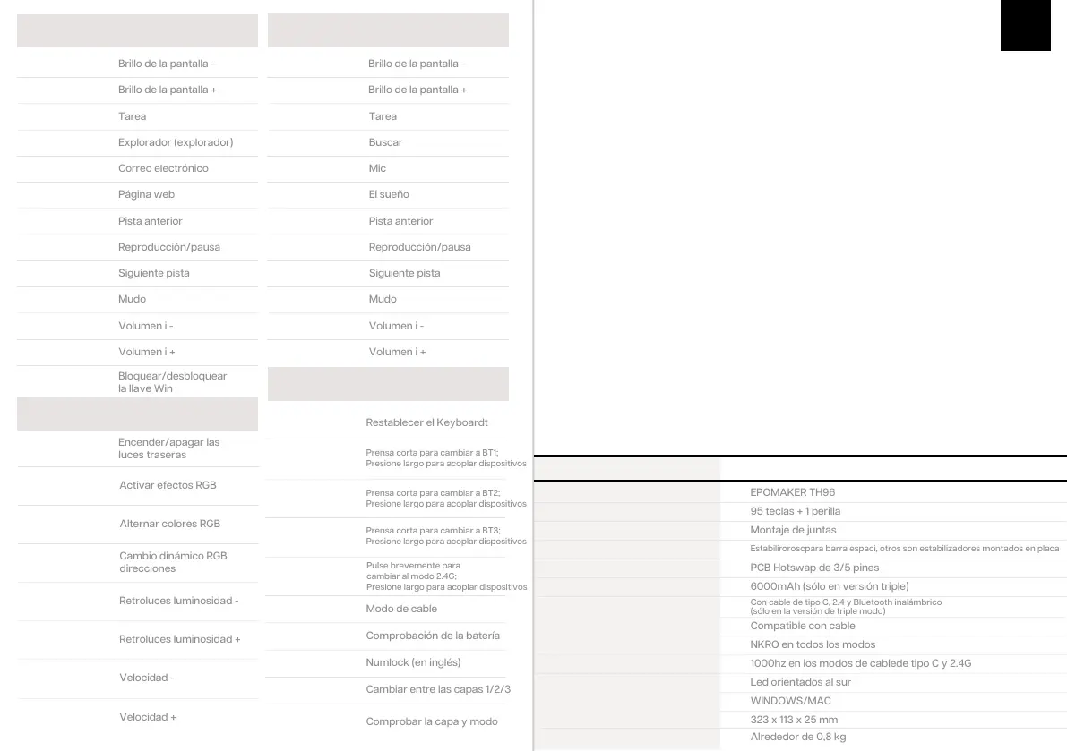 Mantenga la barra espaciadora Fn+, los indicadores de Z/X/C y 1/2/3/4/5 se iluminan para mostrar