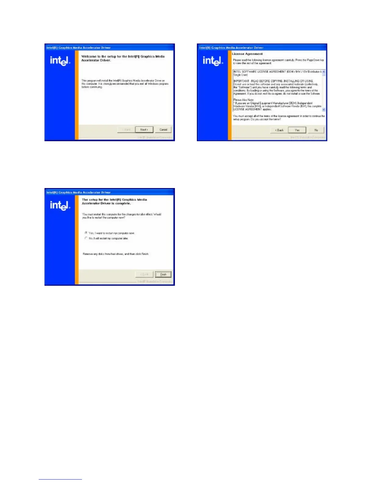 f. Click the “Yes” button on the Intel(R)