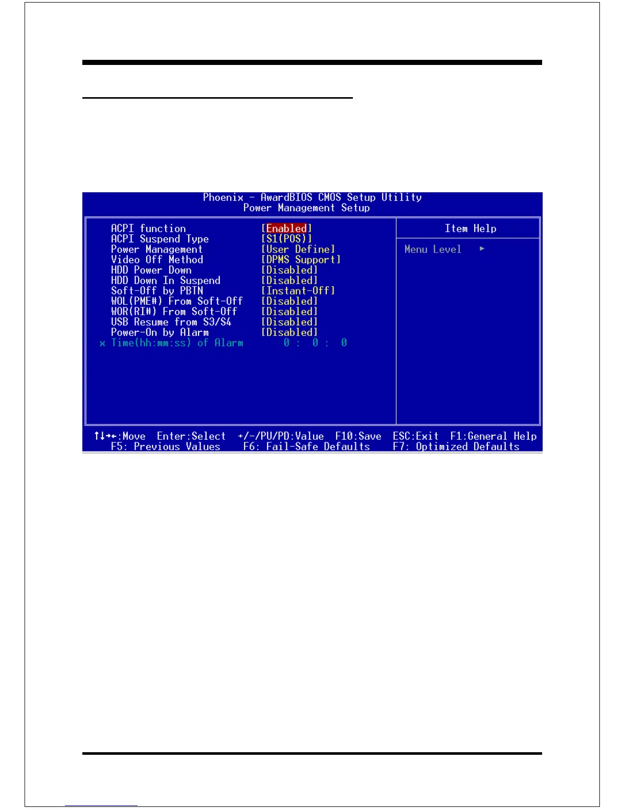 Choose the POWER MANAGEMENT SETUP in the CMOS SETUP UTILITY to