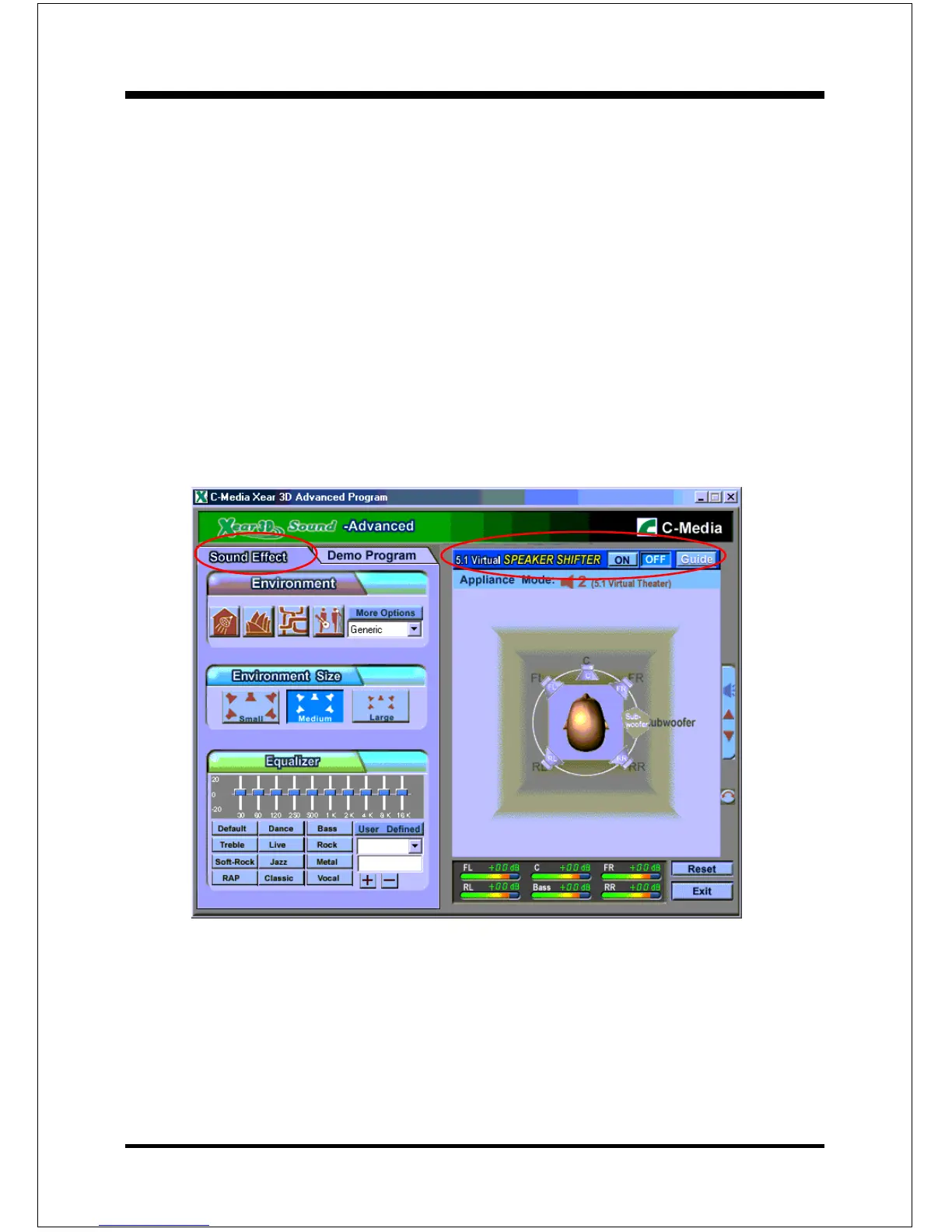 Xear 3D Advanced Program provides another functional block- Sound Effect.