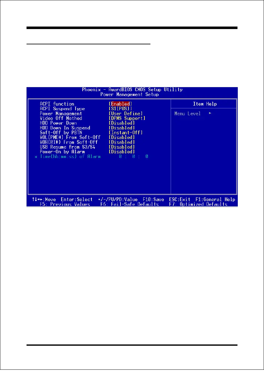 Choose the POWER MANAGEMENT SETUP in the CMOS SETUP UTILITY to