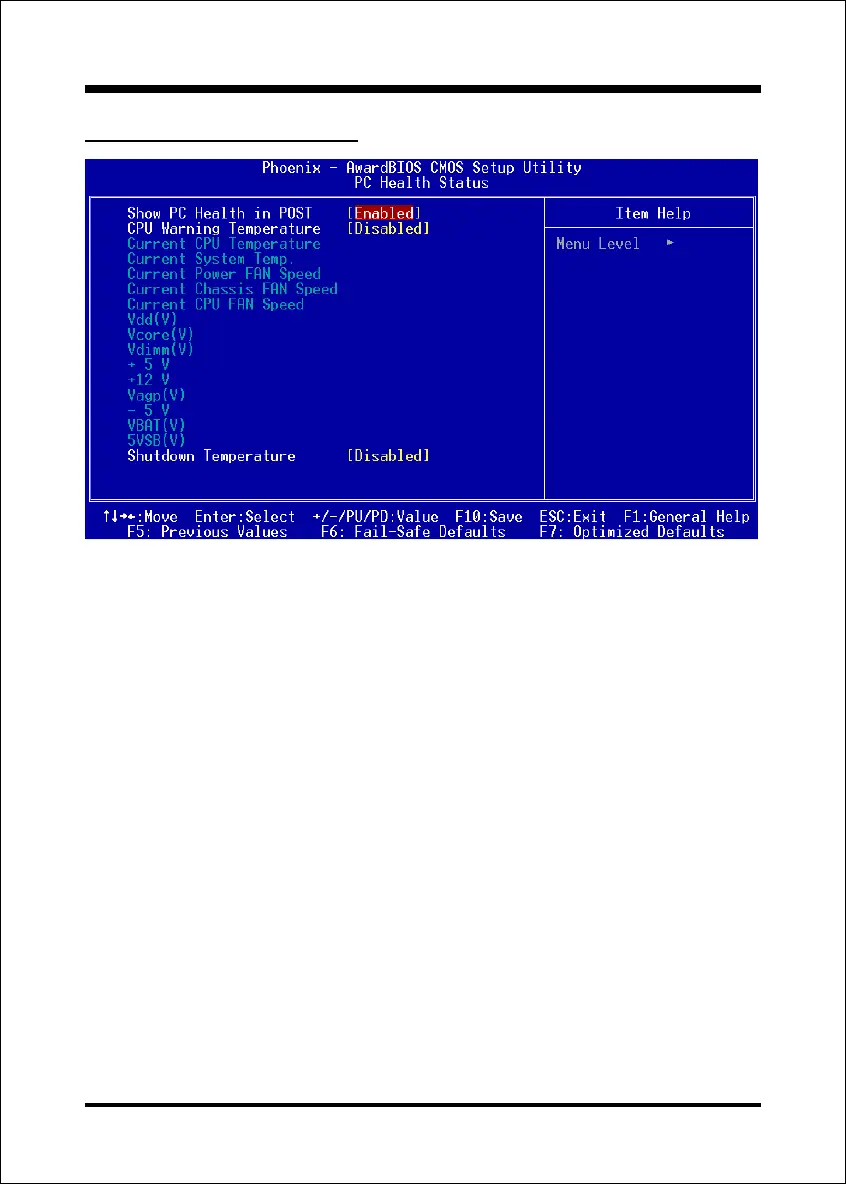 When this function is enabled the PC Health information is displayed during the