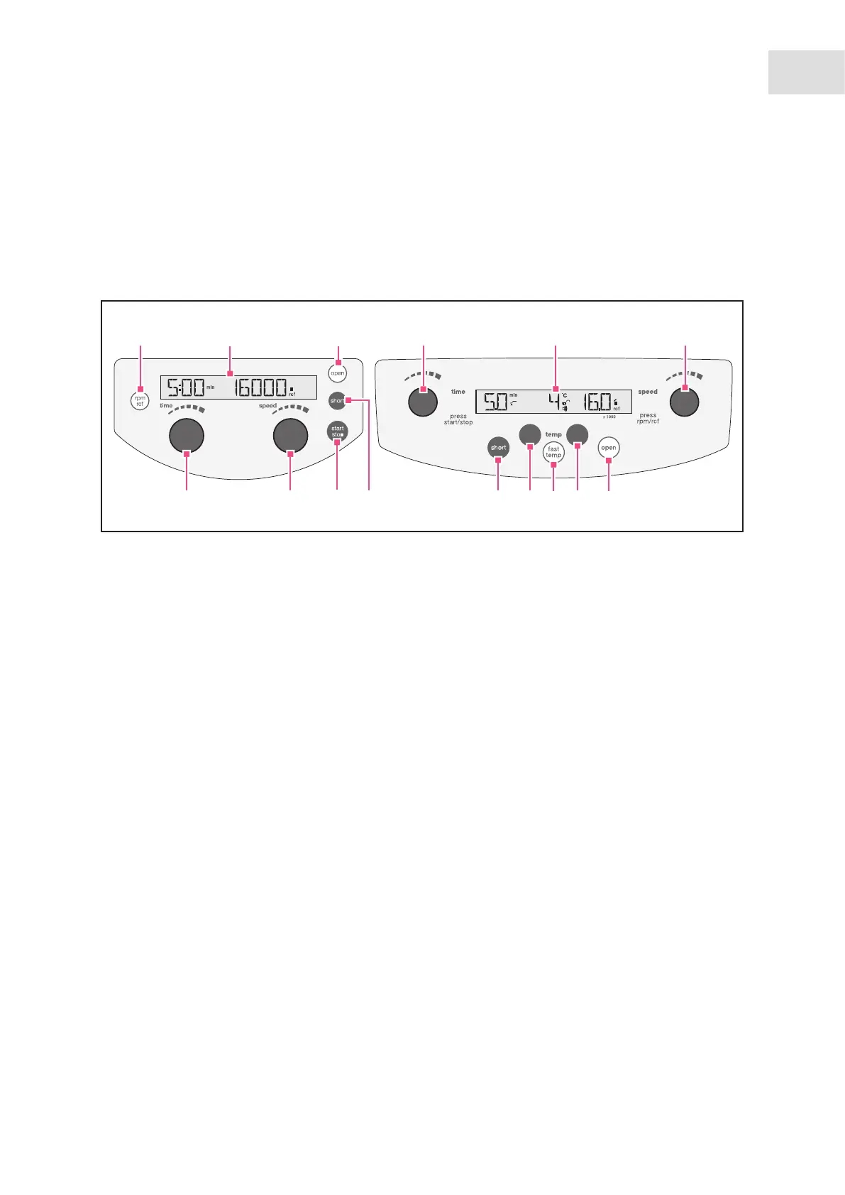Abb. 4-1: Панель управления Centrifuge 5418 и Centrifuge 5418 R.