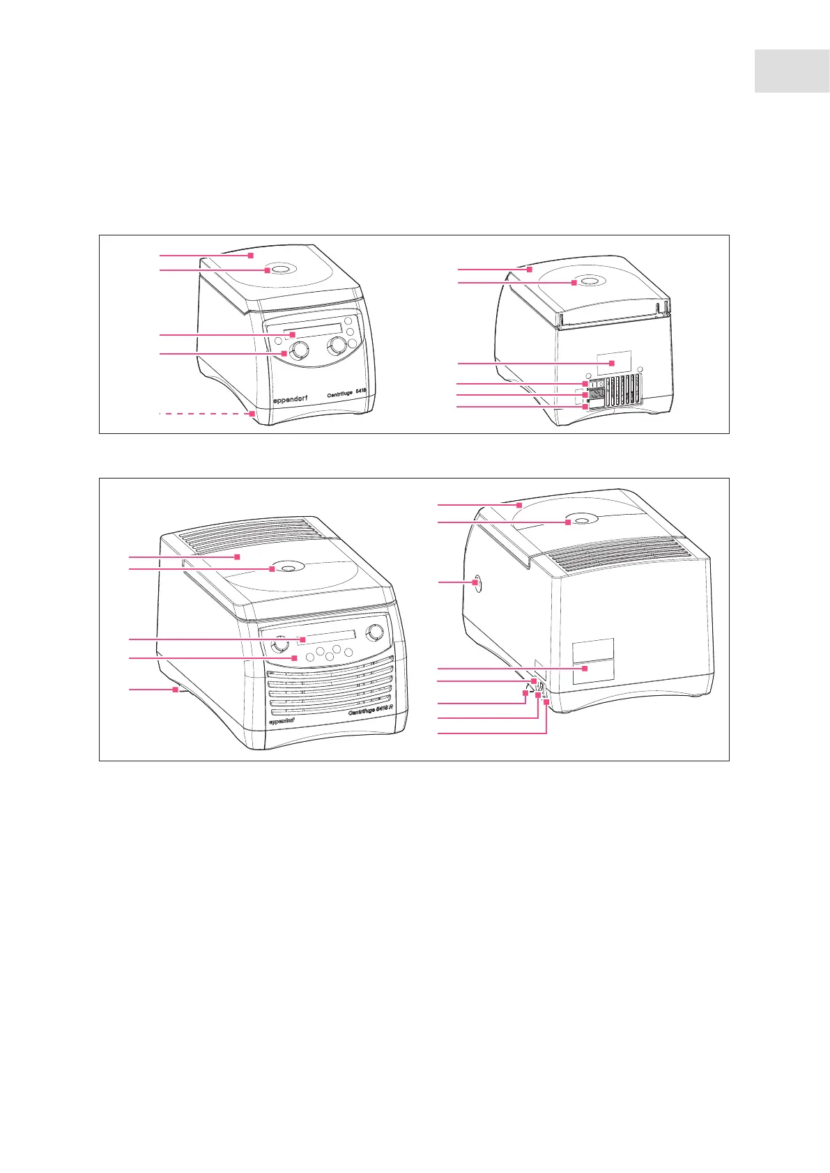 Abb. 2-1: Front and rear view of the Centrifuge 5418