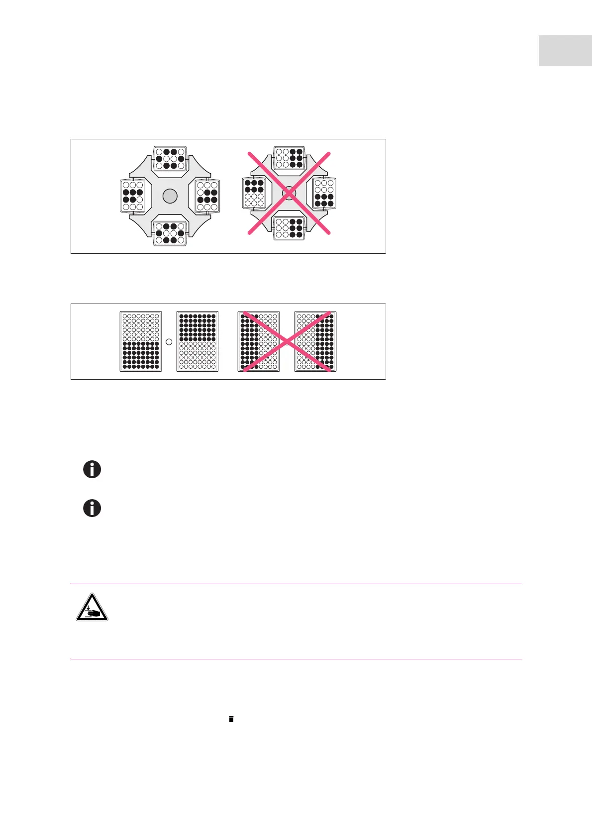 Abb. 5-3: Incomplete, but symmetric loading of the buckets. The pegs of each bucket must be unif ormly loaded.