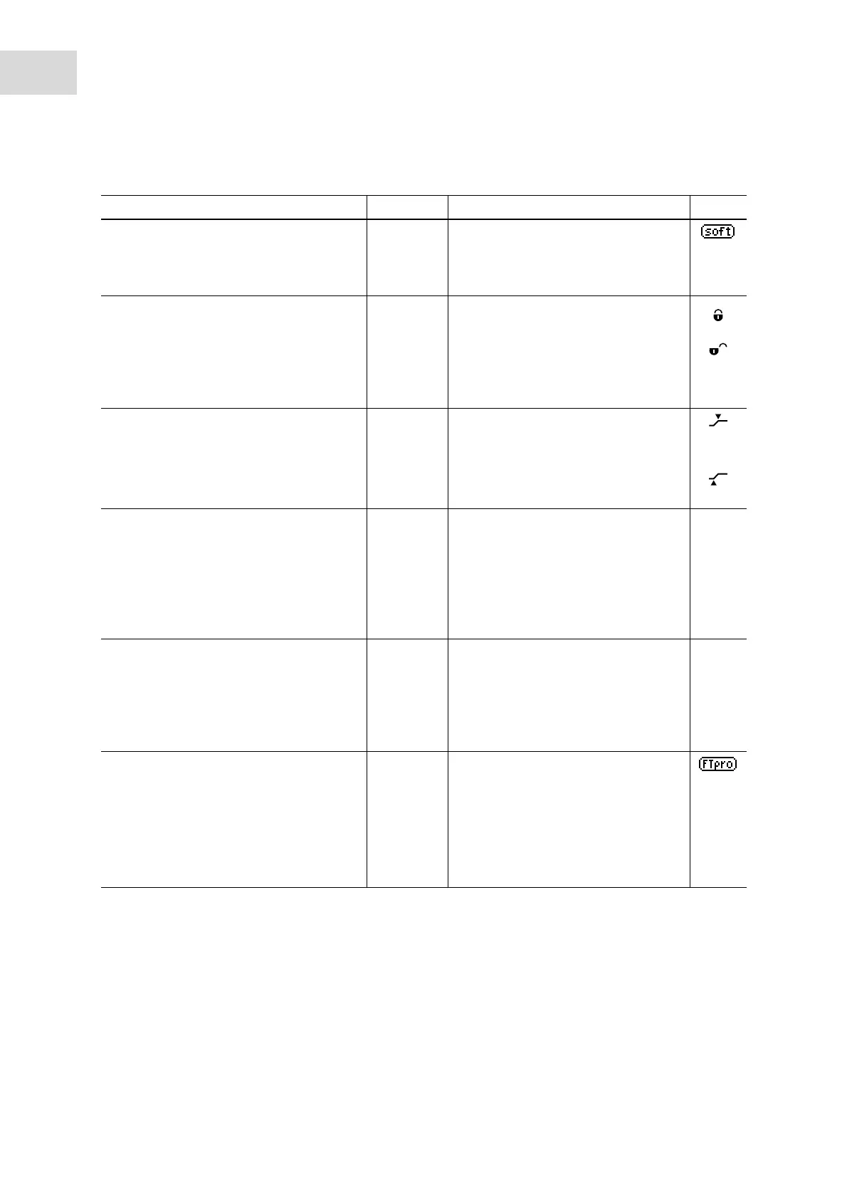 Menu item/meaning Setting Function Display
