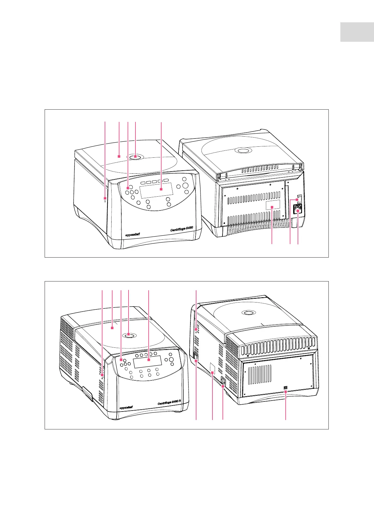 Abb. 2-1: Front and rear view of Centrifuge 5430