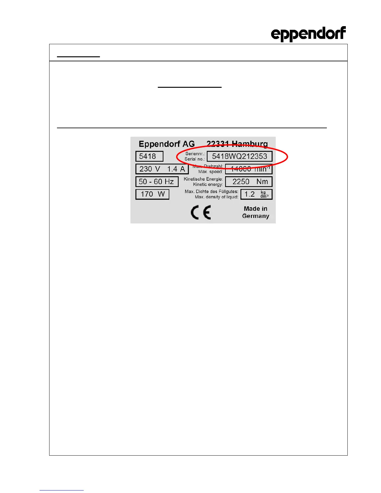 Redesigned nameplate for centrifuges with the new 12-digit serial number (example):