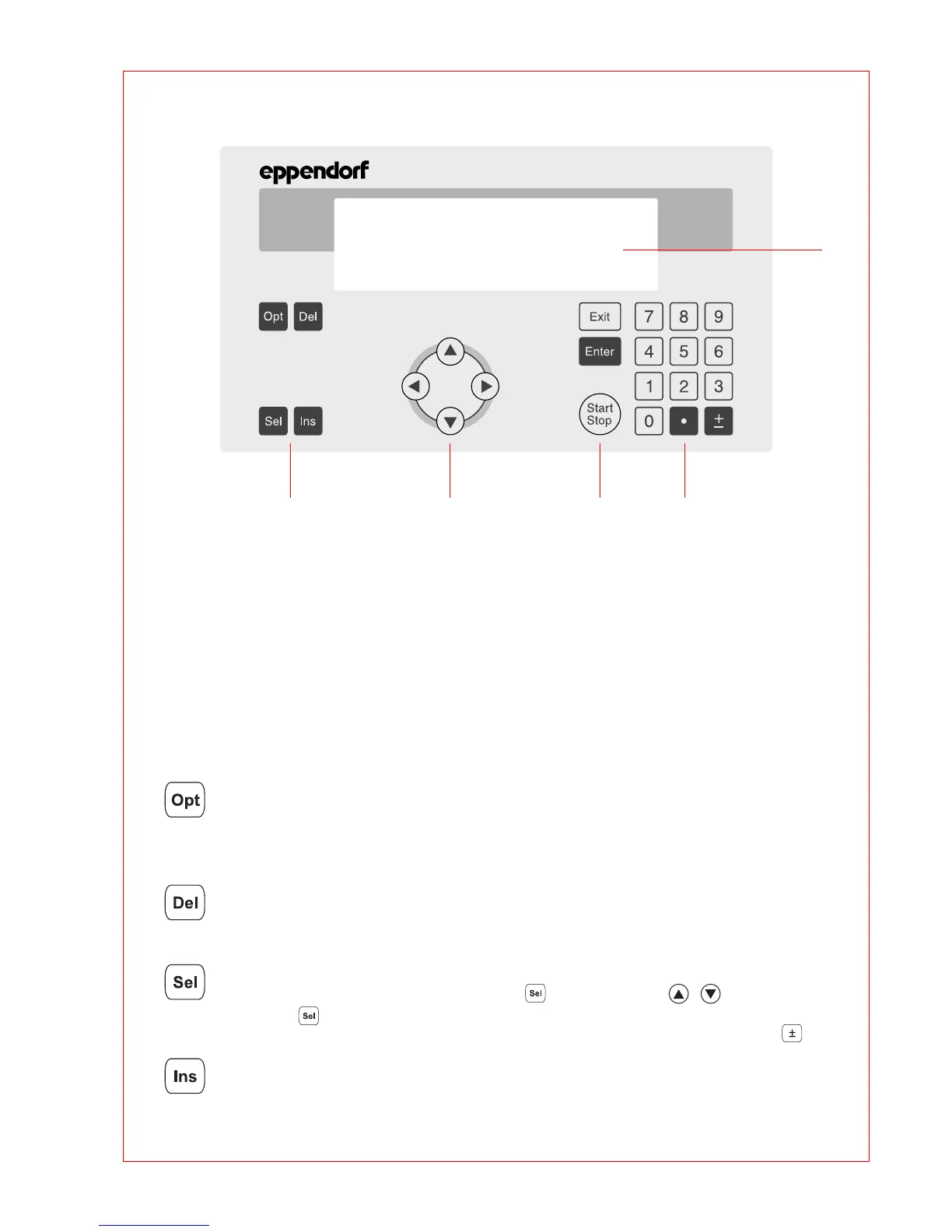– To delete program lines, digits or letters or to reset parameters. Holding down the key