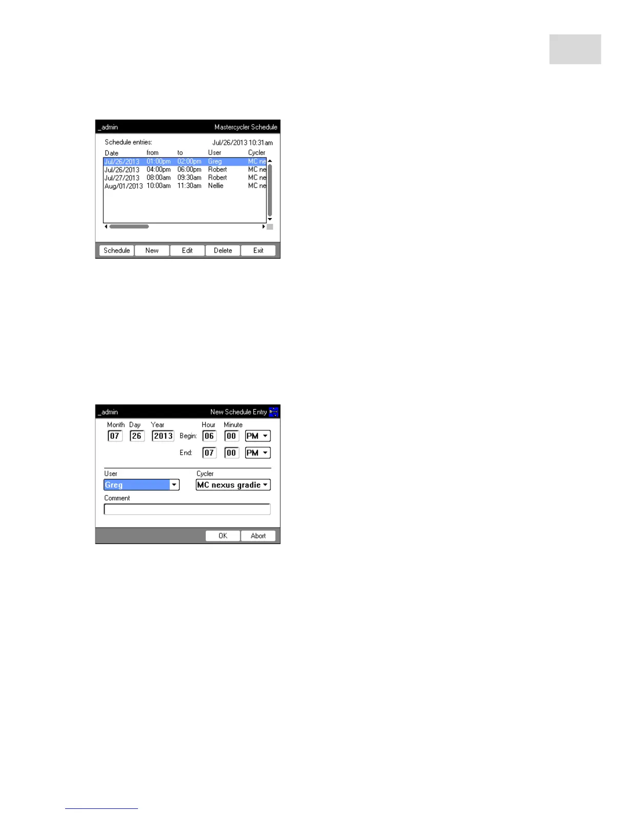 The schedule entry appears in the list in the Mastercycler Schedule window.