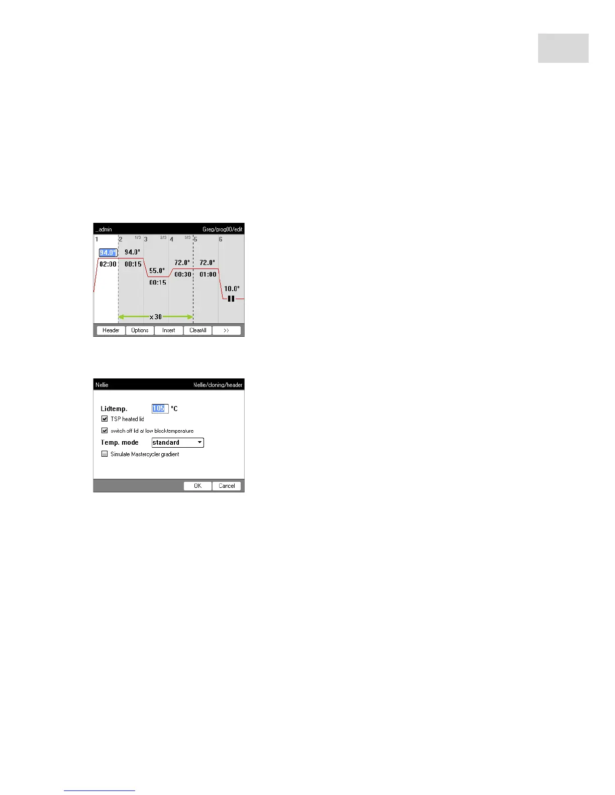 Each Mastercycler nexus program has a program header where you define the block temperature control